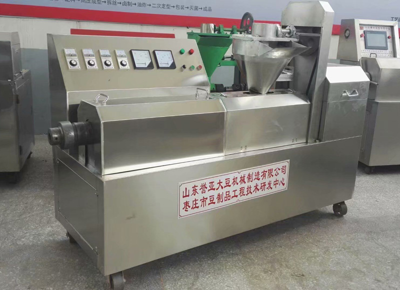 本机采用全不锈钢包装,温度是数显自动控温,加温或降温均有信号灯显示,电流电压大小开机均有显示,自动喂粉可以调速,传动部分是本厂生产的豆制品机械专用减速机,电机架是钢板可调型,机器底部用的高档跑轮,便于移动,冷却部分是自动循环水装置,底部设有大容量的储水箱,加温部分是保温节能型,正常生产可节约用电量的30%,其实用电费和烧煤基本持平。本机是一机多用,可通过不同模具筒生产多种花样的食品,如:素牛排、素鸡翅、素海螺、素肉条、素鸡脯肉、素肉丁、豆虾、豆肠、豆丝、豆花、豆筋等十多种产品,如用户需要其它新花样,可来我厂进行加工制作。 生产出来的产品可炒、烹、炖、炸、凉拌,还可用作麻辣小食品原料。 本机特点:美观、大方、卫生、节能、豪华、具有人性化。 |